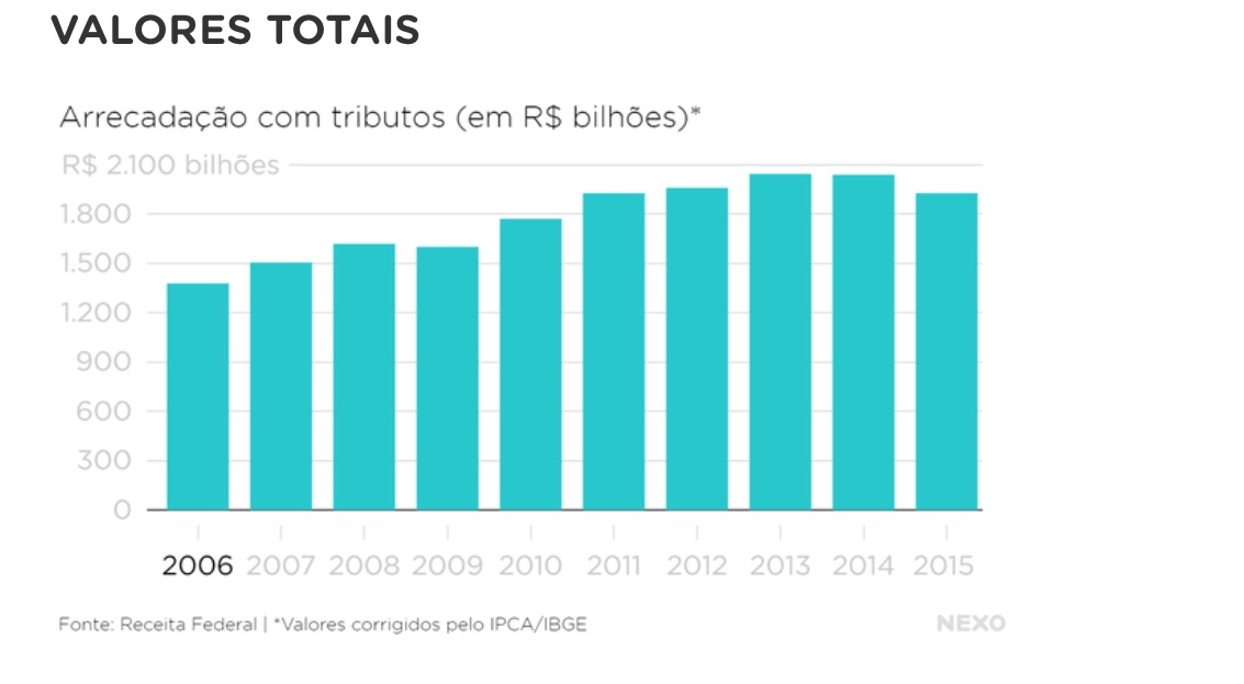 A carga tributária é a relação entre os tributos cobrados e o Produto Interno Bruto, soma de tudo que um país produz. E no caso brasileiro, um dos fatores para o aumento da carga foi a diminuição do PIB em um ano de crise. A retração na economia brasileira em 2015 foi de 3,8%, o que fez os impostos representarem uma parcela maior do total.