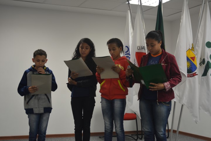 Em agradecimento à homenagem, um grupo de alunos fez uma bela apresentação relatando o histórico de elaboração e implementação do projeto , orientado pela professora responsável, Célia Aparecida Gabriel. Encerrando a apresentação, os alunos emocionaram o público presente cantando o hino da cidade de Congonhas.
